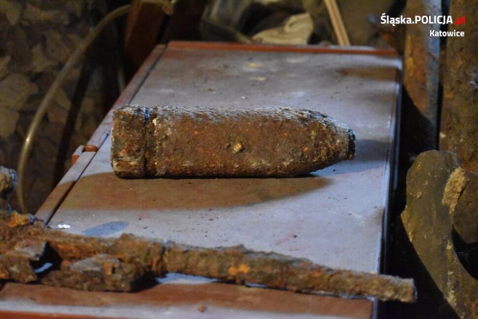 W piwnicy ujawniono dwa pociski kaliber 76 mm, wojskowy granat moździerzowy, skorupę granatu oraz lufę karabinu z elementami zamka. Na miejsce przybył również policjant z nieetatowego zespołu ds. rozpoznania minersko-pirotechnicznego katowickiej komendy, przewodnik psa wyszkolonego do wyszukiwanie zapachów materiałów wybuchowych, a także saperzy z Samodzielnego Pododdziału Kontrterrorystycznego Policji w Katowicach, którzy zabezpieczyli niewybuchy.