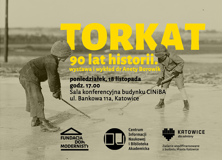 Miasto Katowice, Centrum Informacji Naukowej i Biblioteka Akademicka oraz Fundacja Dom Modernisty zapraszają na wystawę i wykład dr Anety Borowik pt. Torkat - pierwszy w Polsce tor łyżwiarski. 90 lat historii. Spotkanie odbędzie się 18 listopada 2019 r. o godzinie 17.00 w sali konferencyjnej, CINiBA ul. Bankowej 11a, poziom 0. Wstęp wolny.