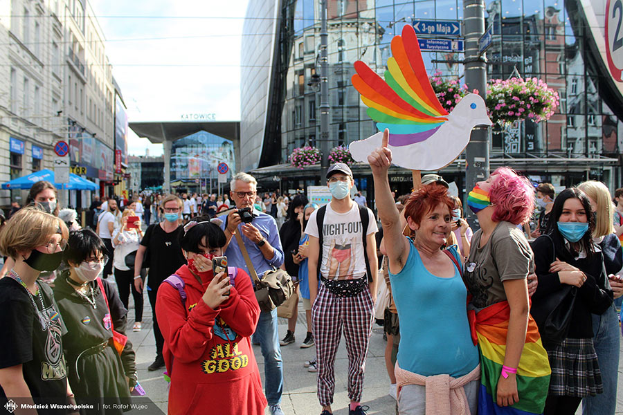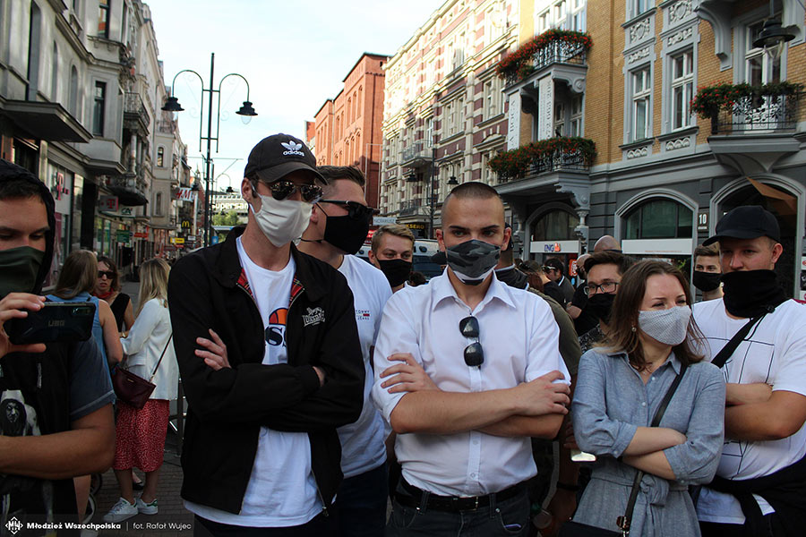 "Wczoraj (05.09) działacze Okręgu Śląskiego MW wzięli udział w zgromadzeniu aby wyrazić swój sprzeciw wobec katowickiego marszu równości. Na miejscu, oprócz działaczy Młodzieży Wszechpolskiej, pojawili się przedstawiciele różnych środowisk zjednoczonych wokół sprzeciwu wobec ideologii LGBT, m. in. kibice, narodowcy, grupa Defend Poland i działacze Pro-Life. Pomimo tego że Marsz Równości tym razem bardzo szybko opuścił miejsce swojego zgromadzenia, pikieta środowisk patriotycznych i konserwatywnych się odbyła. Miały na niej miejsce zaplanowane happeningi.