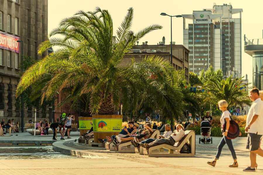 Zdążyły już na stałe wrosnąć w krajobraz centrum Katowic. Feniksy kanaryjskie wracają po jesienno-zimowej przerwie. Od środy (18.05.) w ich cieniu będzie można odpoczywać w rejonie sztucznej Rawy.