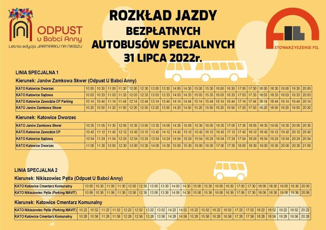 31 lipca 2022 r. w związku z Odpustem u Babci Anny w Katowicach Nikiszowcu, wprowadzone zostaną zmiany tras linii autobusowych 72, 109, 292, 695, 920 i 930: