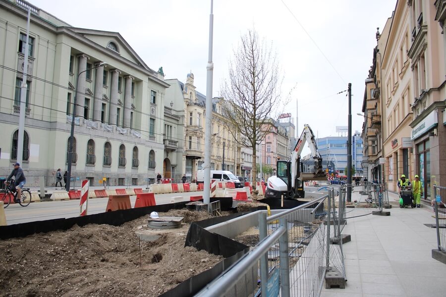 Na ul. Warszawskiej pojawiły się właśnie pierwsze drzewa. Łącznie ma ich tu być niemal 70. Do połowy maja mają się pojawić wszystkie drzewa wysokie – czyli 33 klony polne 'Elsrijk'. Obecnie sukcesywnie pojawiają się na miejscu. Sadzenie drzew to proces, który zajmuje sporo czasu, szczególnie w takim miejscu, gdzie znajdują się okablowania i trakcja tramwajowa.