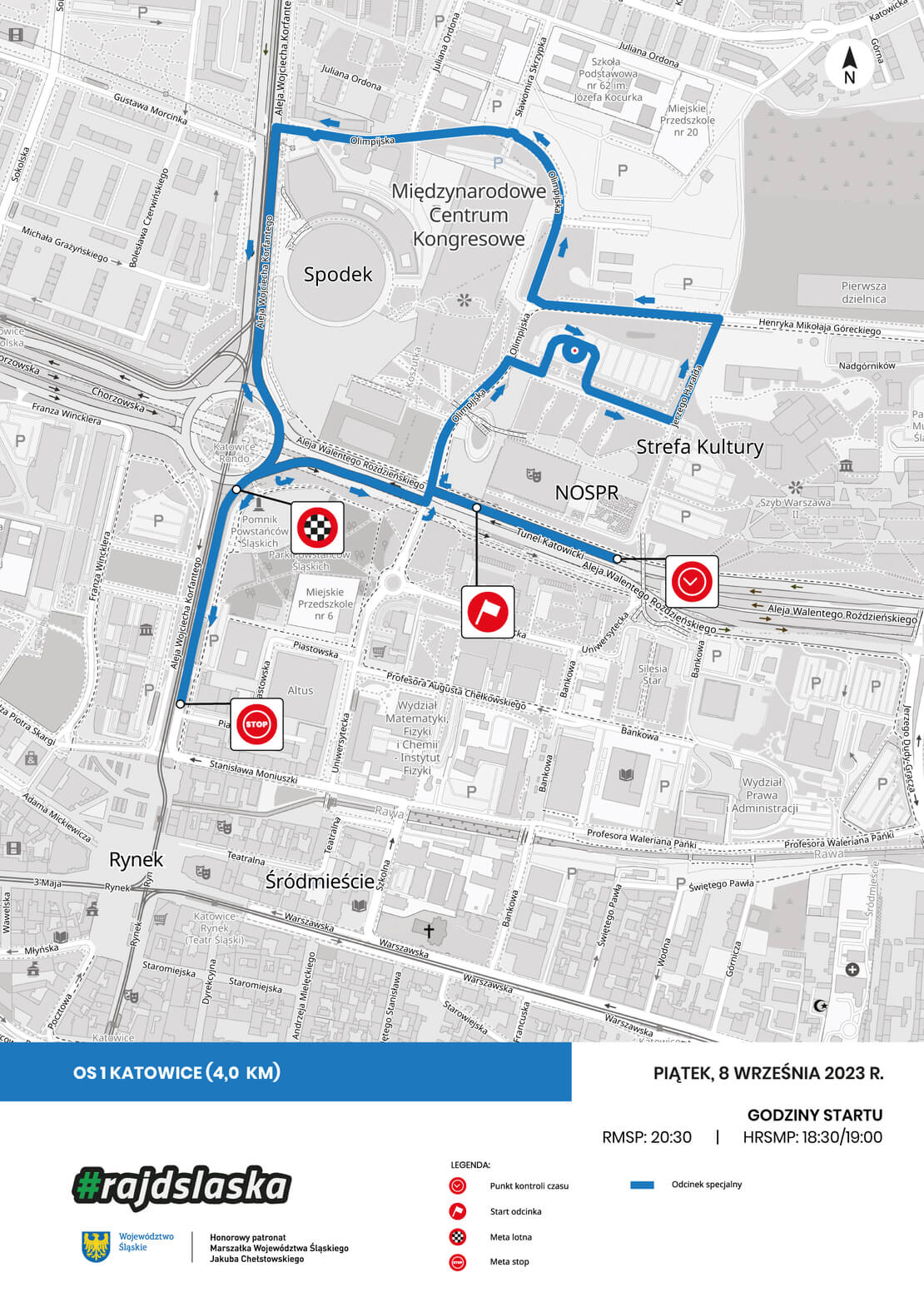 - O 18:30 ruszy motoryzacyjne widowisko na ulicach miasta, a więc spektakularne ściganie na zamkniętym i zabezpieczonym odcinku specjalnym w centrum Katowic, który w tym roku będzie jeszcze bardziej atrakcyjny dla kibiców. Jego trasa jest wydłużona i pokonywana w pętlach, co oznacza, że w jednym miejscu każdą z rajdówek będzie można dwukrotnie zobaczyć w akcji. Najpierw kibicom zaprezentują się załogi w samochodach historycznych, które dwukrotnie pokonają próbę w sercu Katowic (od 18:30 i od 19:00). Zawodnicy we współczesnych samochodach rozpoczną swój show o 20:30 – mówi Grzegorz Wróbel, prezes Fundacji Automobilistów, organizatora imprezy. Odcinek specjalny w Katowicach będzie transmitowany na żywo na antenie Motowizji.