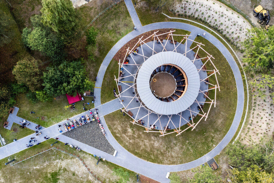 Otoczenie tężni również ma zachęcić mieszkańców do spędzania przy niej czasu – wykonano nasadzenia drzew, zamontowano elementy małej architektury, ławki, stojaki. Dzięki temu wokół tężni tworzy się zacieniona alejka, która będzie dodatkowym atutem dla osób, które chcą korzystać z jej właściwości będąc w ruchu. Te udogodnienia sprawią, że tężnia to przyjazne miejsce dla rodzin, osób aktywnych oraz tych, którzy poszukują wytchnienia w zacisznym otoczeniu natury.