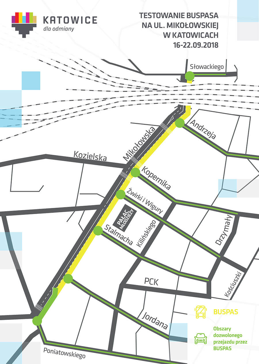 Testowy buspas na Mikołowskiej uruchomiono w ramach Europejskiego Tygodnia Zrównoważonego Transportu jako jedno z działań promujących w Katowicach transport publiczny. ETZT to inicjatywa Komisji Europejskiej. Kampania trwa od 16 do 22 września. W tym roku hasłem kampanii jest „multimodalność", a sloganem „Przesiadaj się i jedź!". W związku z tym podczas całego tygodnia promowane będą wszelkie ekologiczne formy mobilności, takie jak środki transportu zbiorowego, rower, ruch pieszy oraz transport multimodalny, czyli łączenie różnych gałęzi transportu.