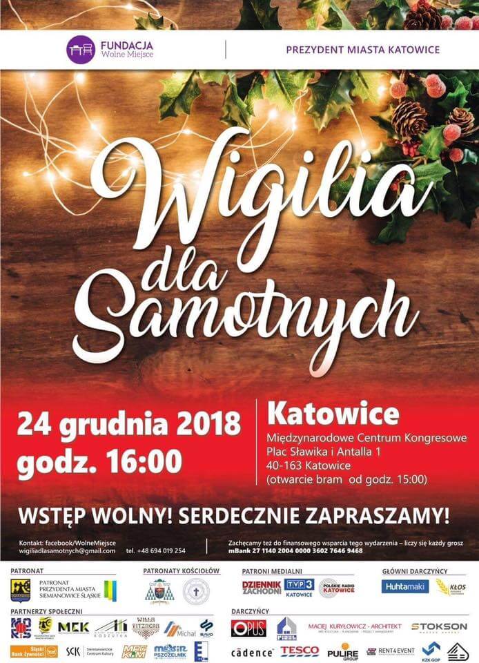 Święta Bożego Narodzenia to niezwykły czas, w którym nikt nie powinien być sam. W imieniu organizatora – Fundacji Wolne Miejsce zapraszamy do wspólnego spędzenia Wigilii, w miłej i przyjaznej atmosferze w Międzynarodowym Centrum Kongresowym 24 grudnia. Wigilia rozpoczyna się o godzinie 16:00, wejście od godz. 15:00.