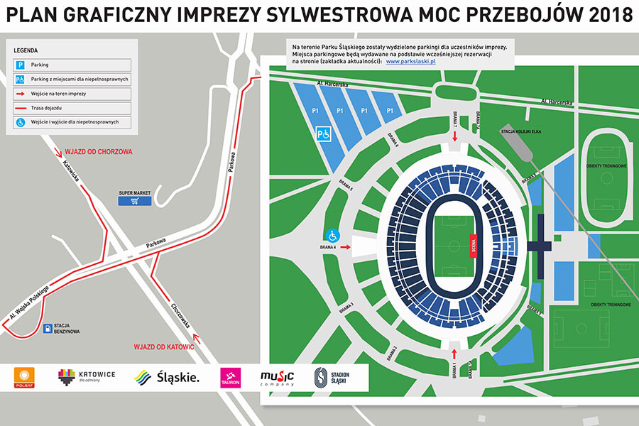 Organizatorzy sugerują przybycie na stadion najwcześniej jak to możliwe, przy czym bramy stadionu zostaną otwarte dla widzów już o godzinie 18:30. Wejście dla publiczności odbywać się będzie bramami nr 1, 4 oraz 7. Osoby wybierające się na imprezę sylwestrową na Stadionie Śląskim powinny mieć na uwadze możliwe utrudnienia drogowe / korki drogowe w aglomeracji śląskiej.