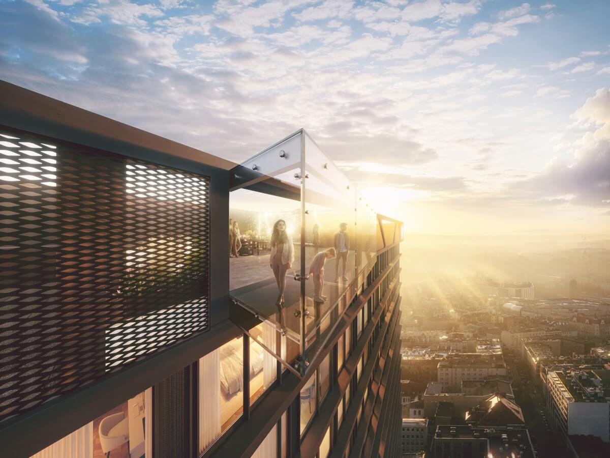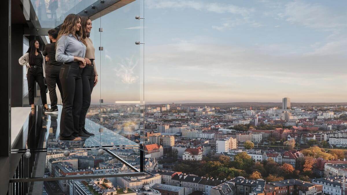 Proponowany przez Trust Investment sky walk to przeszklony kubik o powierzchni około 6 m², wysunięty z południowej ściany wieżowca na 29. piętrze (około 95 m nad ziemią). Ten sky walk będzie niezwykle atrakcyjnym punktem widokowym dostępnym dla mieszkańców, ale też na pewno niezapomnianym przeżyciem dla każdego gościa.