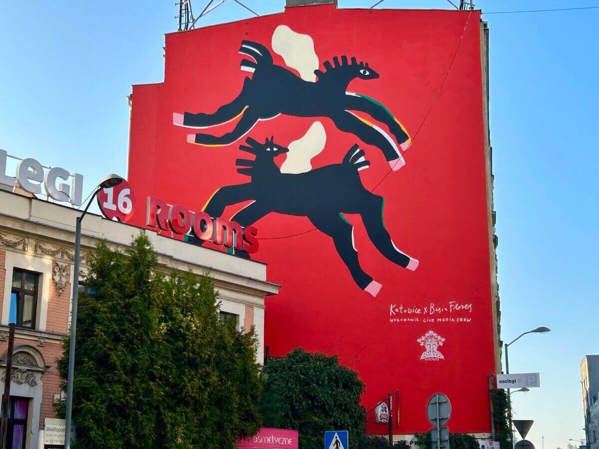 Z okazji 160. urodzin Katowic przy ul. Słowackiego powstał wyjątkowy mural autorstwa Basi Flores, przedstawiający dwa czarne pegazy na czerwonym tle.