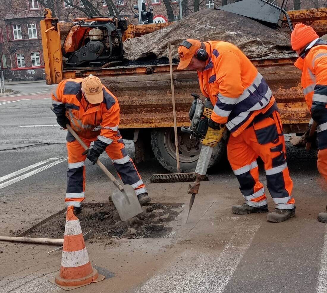 Zima odcisnęła swoje piętno na katowickich ulicach. Miejski Zarząd Ulic i Mostów prowadzi obecnie intensywne prace naprawcze. Specjalne ekipy z ciężkim sprzętem uzupełniają pęknięcia i ubytki w nawierzchni, szczególnie na głównych arteriach miasta oraz trasach autobusowych. Priorytetem są miejsca, gdzie uszkodzenia stanowią największe zagrożenie dla użytkowników dróg.