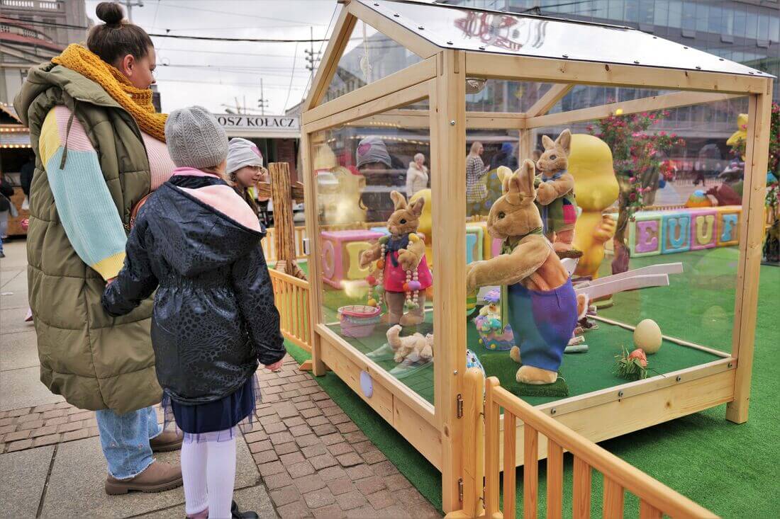 Jednym z najbardziej oczekiwanych elementów jarmarku będą interaktywne scenografie wielkanocne. Wśród nich znajdziemy m.in. „Kurnik Gustawa i Eleonory” oraz „U wielkanocnego baranka” – specjalnie przygotowane aranżacje, które przeniosą odwiedzających w świąteczny świat pełen barwnych dekoracji. Na gości czekać będzie także wielkanocna fotobudka, dekoracje 3D oraz fotodisplaye, które stanowić będą idealne tło dla rodzinnych, pamiątkowych zdjęć.