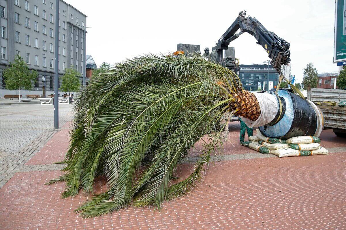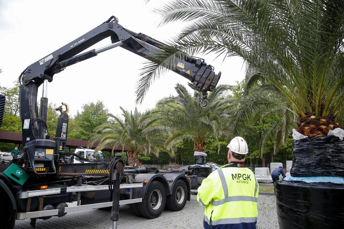 Każda palma ma od 5 do 6 metrów wysokości i waży kilka ton, dlatego ich transport z Panewnik to prawdziwa operacja – z udziałem udostępnionego przez MPGK Katowice, ciężarówki i precyzyjnego rozładunku. Jest to naprawdę spore wyzwanie logistyczne, ważne, bo obwieszające mieszkańcom wiosnę w Katowicach!